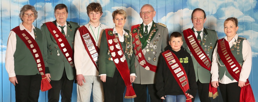 Wilde Königin Bärbel Ringer, Wilder König Norbert Ziebell, Jugendkönig Paul Ryba, Schützenkönigin Grid Röse-Betke, Schützenkönig Dieter Voß, Kinderkönig Jens Ehlbeck, Glückskönig Dieter Hein, Glückskönigin Jessica Hein.